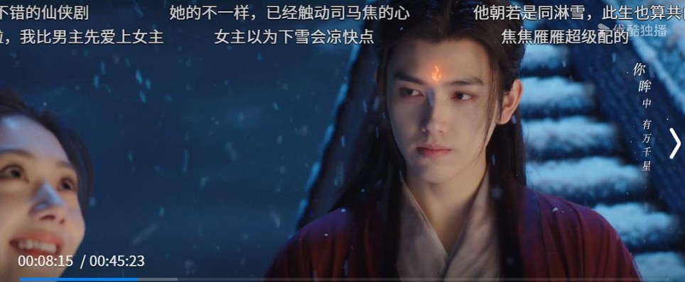 这次本来是另外一位欣赏的演员(唐诡男演员哈哈)要播新剧了,点开优酷去支持了一下,很巧的是看到了献鱼的画面,泛滥的仙侠剧是不入我眼的,可能是看到陈飞宇又出新剧了,画面好看,名字取得也很有特色,就鬼使神差地点了进去,就一发不可收拾了。